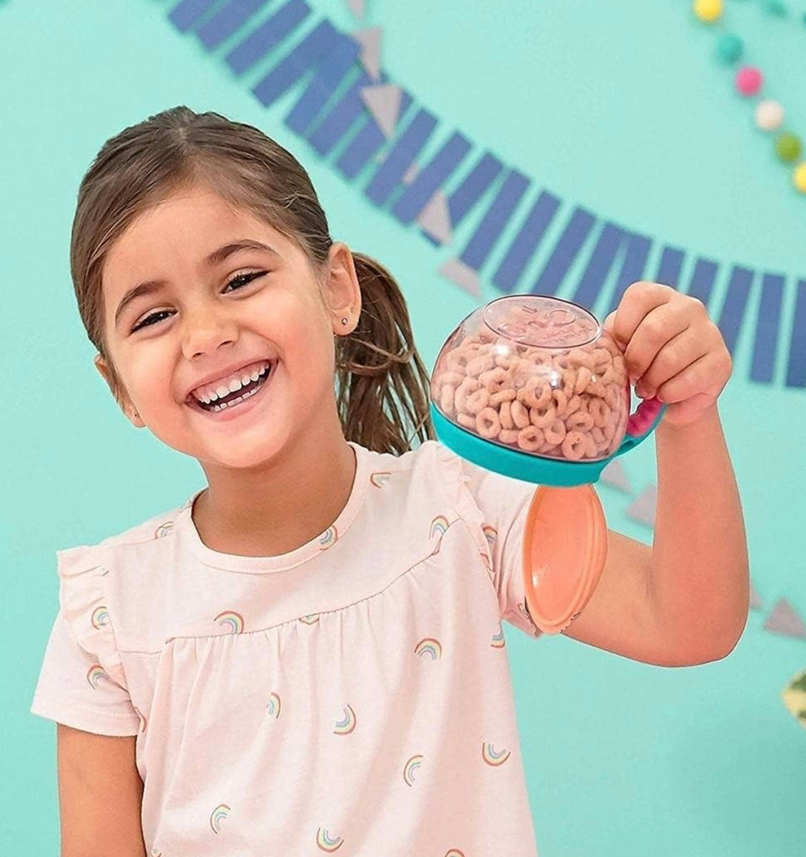 - Perfecto para llevar munchies, esta bonita taza fomenta el refrigerio independiente sin el desorden. El mango de fácil agarre tiene el tamaño adecuado para manos pequeñas, y la tapa superior a presión garantiza que la comida se mantenga fresca